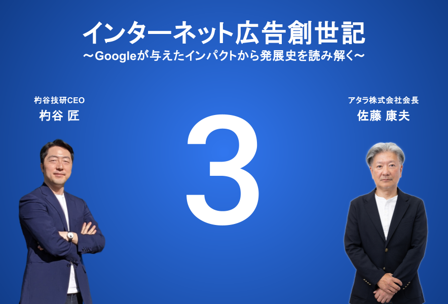 杓谷技研というマーケティング支援会社の代表を務めております杓谷 匠(しゃくや たくみ)と申します。この記事では、アタラ株式会社会長の佐藤康夫さんのご協力のもと、2024年9月5日(木)に連載を開始した「インターネット広告創世記 ~Googleが与えたインパクトから発展史を読み解く〜」の第3話をお届けします。なお、本連載は、株式会社インプレスが運営するWeb担当者Forumでも同時に公開しています。