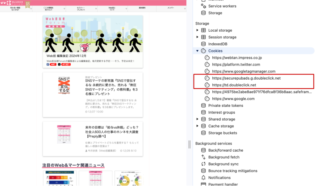 Google Chromeに保存されたDoubleClickのCookie。Chromeの「Developers Tools」で確認できる。