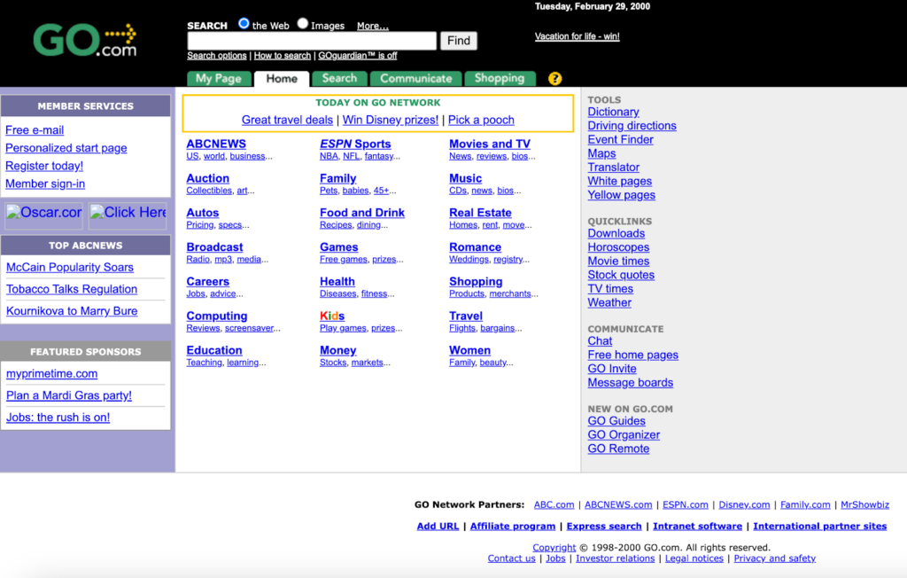 左:Infoseekの基盤を利用して作ったディズニーの「Go.com」(2000年2月)