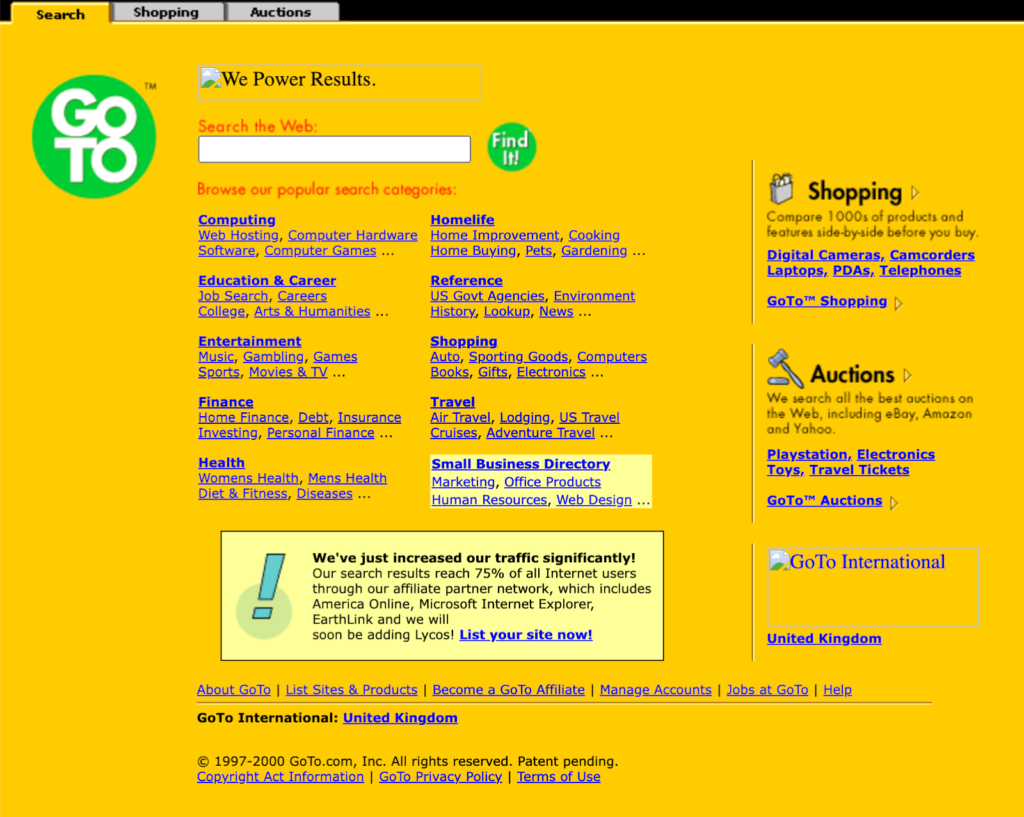 出典:Internet Archive右:2000年12月の「GoTo.com」出典:Internet Archive