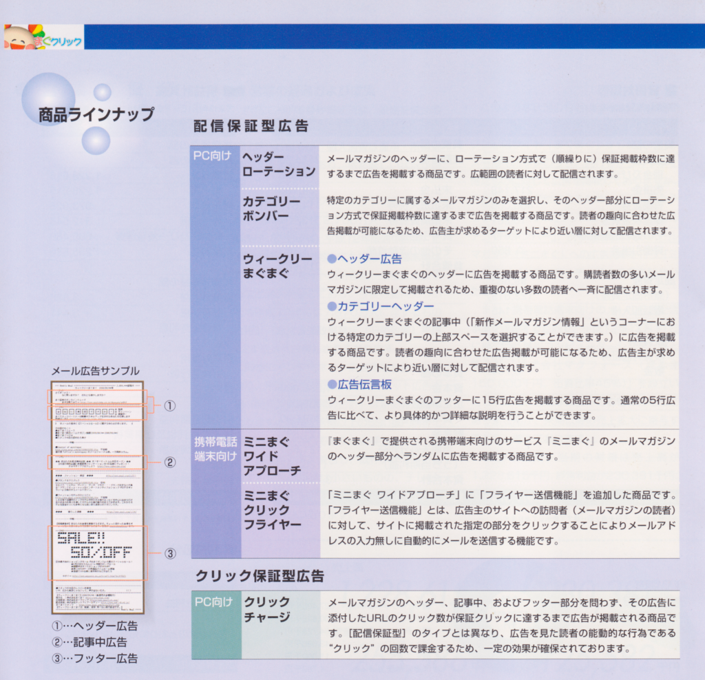 2001年2月の株主総会資料に掲載されたまぐクリックの広告商品メニュー(加藤さん所蔵)