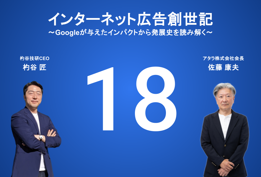 杓谷技研というマーケティング支援会社の代表を務めております杓谷 匠(しゃくや たくみ)と申します。この記事では、アタラ株式会社会長の佐藤康夫さんのご協力のもと、2024年9月5日(木)に連載を開始した「インターネット広告創世記 ~Googleが与えたインパクトから発展史を読み解く〜」の第18話をお届けします。なお、本連載は、株式会社インプレスが運営するWeb担当者Forumでも同時に公開しています。
