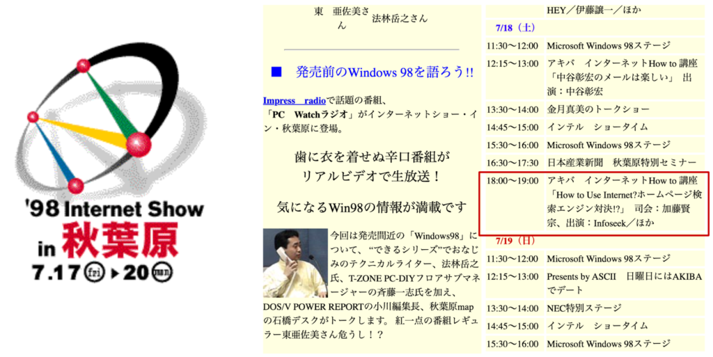 出典:PC Watch『98 Internet Show in AKIHABARA』