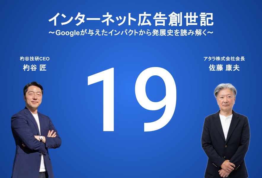 杓谷技研というマーケティング支援会社の代表を務めております杓谷 匠(しゃくや たくみ)と申します。この記事では、アタラ株式会社会長の佐藤康夫さんのご協力のもと、2024年9月5日(木)に連載を開始した「インターネット広告創世記 ~Googleが与えたインパクトから発展史を読み解く〜」の第19話をお届けします。なお、本連載は、株式会社インプレスが運営するWeb担当者Forumでも同時に公開しています。
