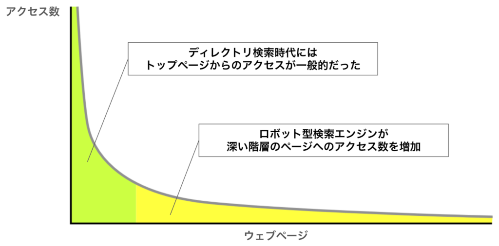 ところが、Googleのようなロボット型の検索エンジンが普及してくると「ディープリンク」のように検索語句に関連がある深い階層のページにユーザーが直接アクセスするようになります。トップページを介さずにウェブサイトにアクセスする流れが増えてきて、そちらの方が全体の割合としては大きくなってきていました。こうした背景もあってAdSenseが登場したわけです。インターネット広告の歴史という観点から見ると、この情報の流通経路の変化が与えた影響は大きかったと思います。