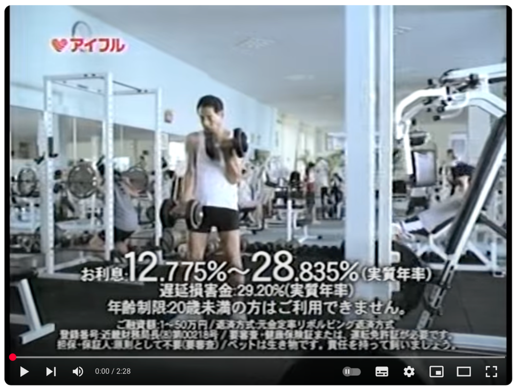 加藤:第29話でも少しお話しましたが、1996年から2005年までの10年間、日本で広告宣伝費を使う企業の上位は、武富士、プロミス、アコム、アイフルの4社で固定でした。当時と今では桁が一つ違うというぐらい広告宣伝費の規模が大きかったのですが、この4社こそが、10年以上にわたり日本の広告産業の屋台骨だったんです。テレビCMのスポット広告はこの4社で荒く見積もっても15%はいってたと思います。下の動画は2005年当時の消費者金融会社のテレビCMです。きっと見覚えのある方も多いのではないでしょうか。