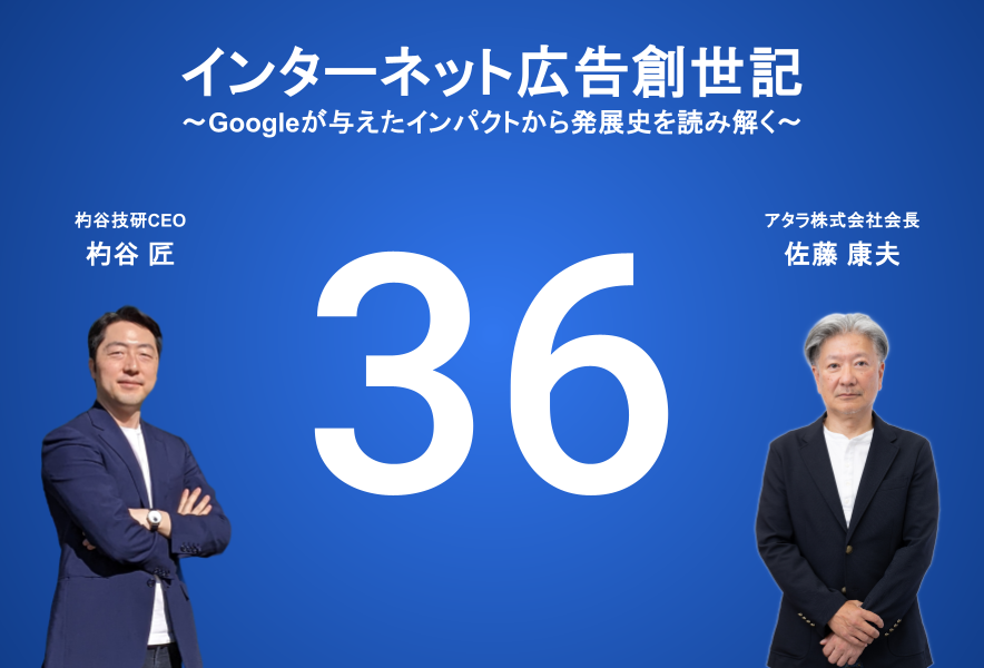杓谷技研というマーケティング支援会社の代表を務めております杓谷 匠(しゃくや たくみ)と申します。この記事では、アタラ株式会社会長の佐藤康夫さんのご協力のもと、2024年9月5日(木)に連載を開始した「インターネット広告創世記 ~Googleが与えたインパクトから発展史を読み解く〜」の第36話をお届けします。なお、本連載は、株式会社インプレスが運営するWeb担当者Forumでも同時に公開しています。