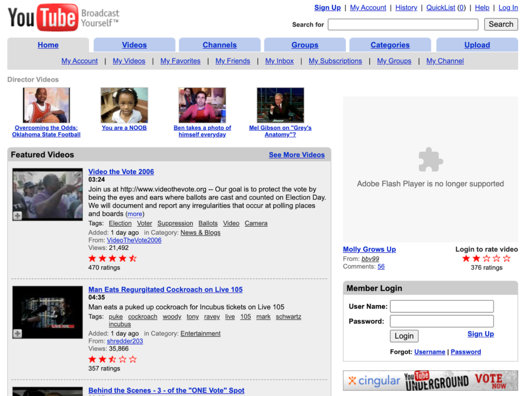 GoogleによるYouTubeの買収が発表された2006年10月のYouTube