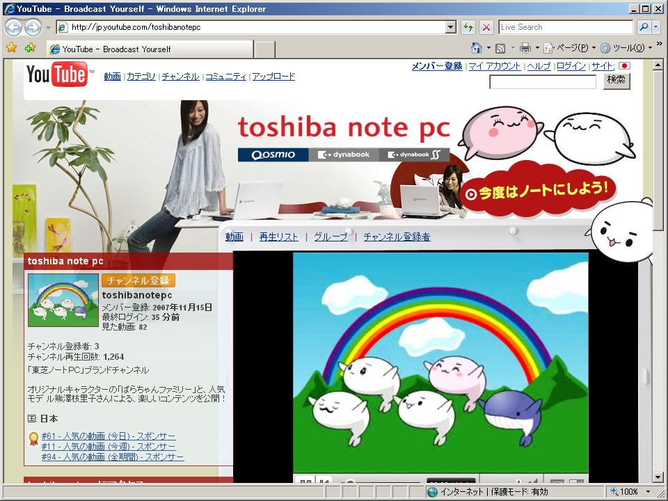 下の画像は、その時東芝が開設した「東芝ノートPC」の「ブランドチャンネル」です。