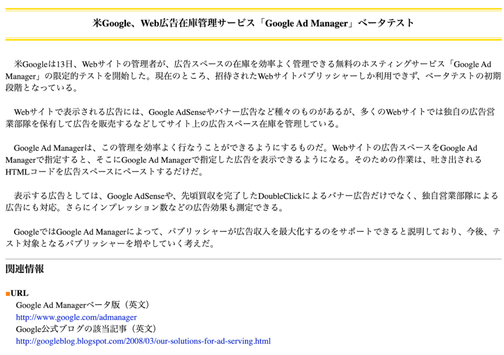 出典:Internet Watch「米Google、Web広告在庫管理サービス「Google Ad Manager」ベータテスト」(2008年3月14日付け)