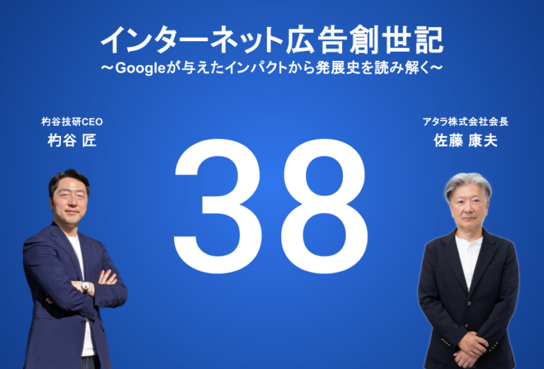 杓谷技研というマーケティング支援会社の代表を務めております杓谷 匠(しゃくや たくみ)と申します。この記事では、アタラ株式会社会長の佐藤康夫さんのご協力のもと、2024年9月5日(木)に連載を開始した「インターネット広告 … 続きを読む 第38話:Googleがもたらした「インターネット広告の民主化」は「日本の広告の民主化」でもあった