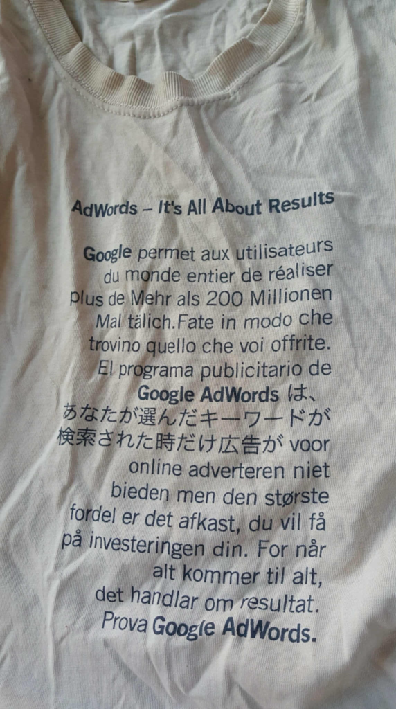 AdWords1周年のインターナショナルイベントの際にシェリルが配ったTシャツ(佐藤さん所蔵)