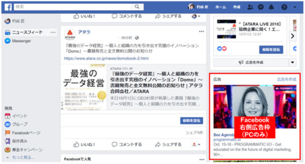 2018年の「Facebook右側広告枠」