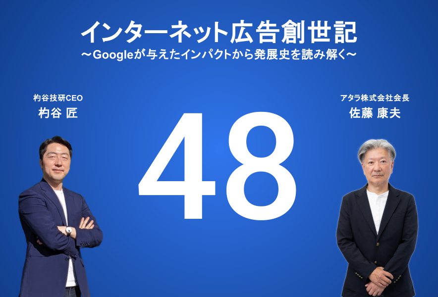 杓谷技研というマーケティング支援会社の代表を務めております杓谷 匠(しゃくや たくみ)と申します。この記事では、アタラ株式会社会長の佐藤康夫さんのご協力のもと、2024年9月5日(木)に連載を開始した「インターネット広告創世記 ~Googleが与えたインパクトから発展史を読み解く〜」の第48話をお届けします。なお、本連載は、株式会社インプレスが運営するWeb担当者Forumでも同時に公開しています。