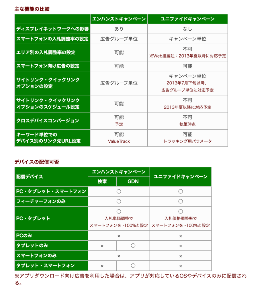 出典:Web担当者Forum「エンハンストキャンペーンやユニファイドキャンペーン強制移行直前! 8分でわかる新機能と必要な準備」(2013年7月5日付け)